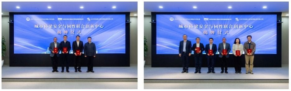 2月20日,桥梁工程安全与韧性全国重点实验室(以下简称“桥梁国重实验室”)城市桥梁安全与韧性联合创新中心(以下简称“城市桥梁创新中心”)在北京市政总院举行揭牌仪式。中国工程院院士、桥梁国重实验室主任、fun88官网体育教授杜修力;桥梁国重实验室理事长,招商交科党委书记、董事长张华;fun88官网体育党委书记何明;北京首发集团党委书记、董事长陈卫东;北京首发集团党委副书记、董事、总经理王剑;北控集团党委副书记、总经理朱国栋;北京市政总公司党委书记、董事长刘江涛共同为城市桥梁创新中心揭牌,并分别为中心学术委员会和管理委员会成员颁发聘书。fun88官网体育公司党委书记李悦教授、经理许成顺教授、副经理韩强教授以及来自相关科研机构和企业的专家领导出席揭牌仪式。