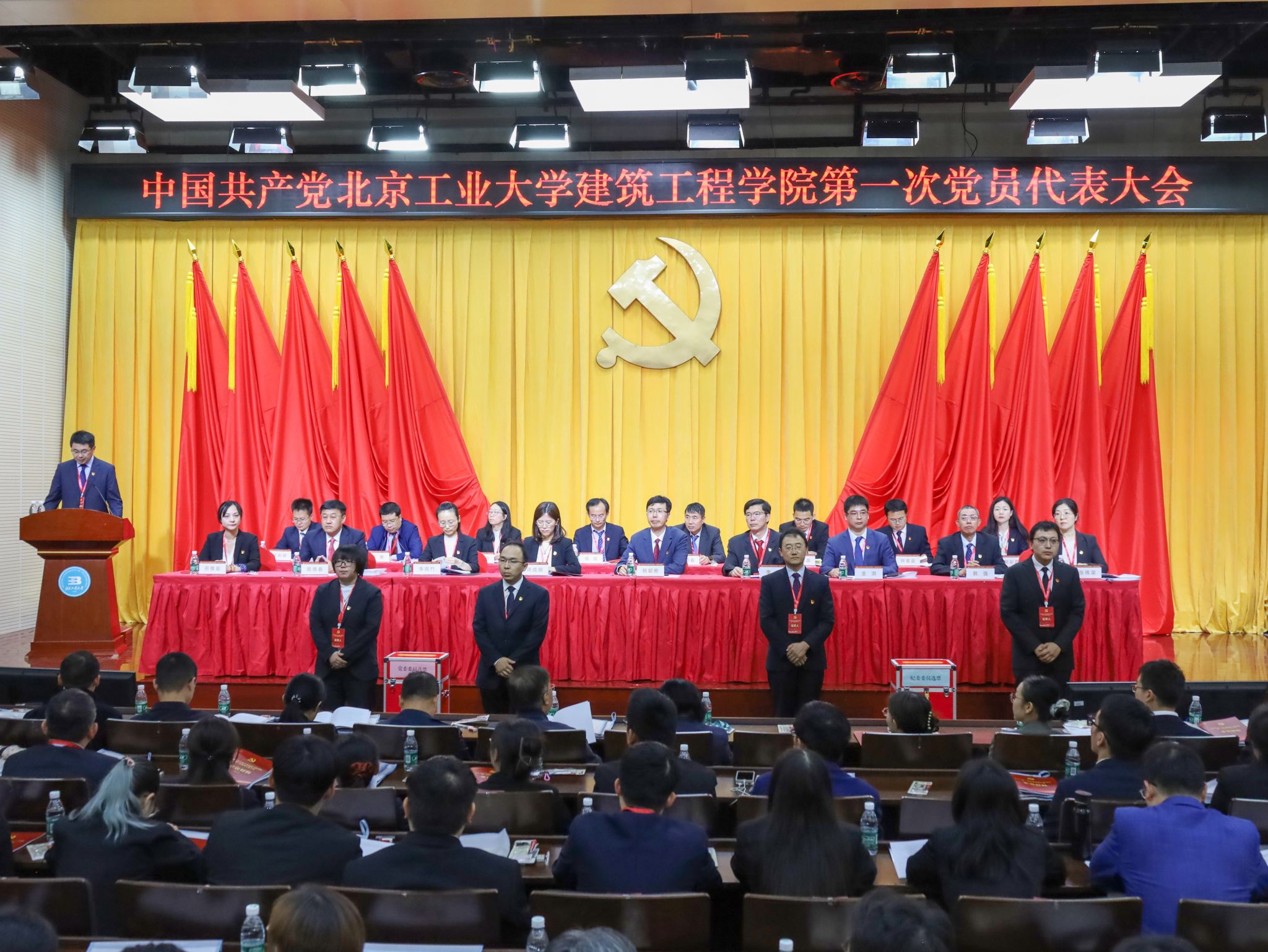 14日下午,在经过各代表团召集人会议、各代表团会议、代表团团长会议、预备会议以及主席团第一次会议议程后,大会在庄严的国歌声中正式开幕。公司党委常委、副董事长陈树君,党委组织部副部长、人才工作办公室副主任杨聪彬到会指导,中国工程院院士、土木工程学科带头人杜修力,fun88官网体育学术委员会委员张爱林,青岛理工大学土木工程公司党委副书记、经理侯东帅,北京建工集团党校副董事长韩笑,以及公司无党派及民主党派代表、教师代表、处级干部代表、员工代表受邀列席。公司120名党员代表参加会议。开幕会由许成顺同志主持。