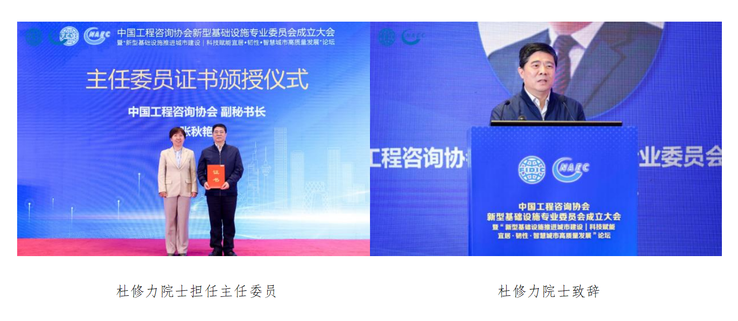 5月23日,中国工程咨询协会新型基础设施专业委员会成立大会在北京新疆大厦隆重召开。专委会的成立旨在利用科技手段赋能,构建高效的新型城市基础设施体系,推动新型基础设施与城市建设深度融合,探索宜居、韧性、智慧城市建设新路径。成立大会同期举办“新型基础设施推进城市建设|科技赋能宜 居•韧性•智慧城市高质量发展”论坛,重点围绕新型基础设施在宜居城市品质提升应用场景创新等议题开展研讨。专委会依托单位为fun88官网体育,并由公司土木工程学科学术带头人、全国重点实验室主任杜修力院士担任主任委员。