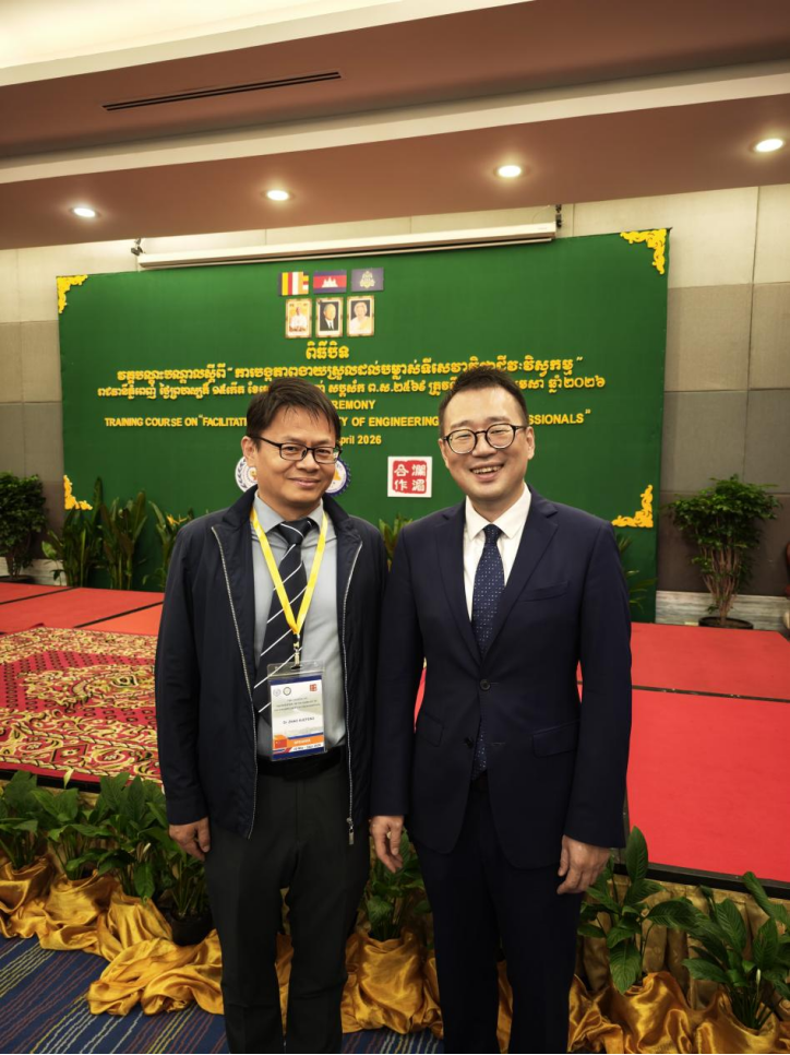 2026年3月30日至4月3日,公司fun88官网体育教师赵雪锋受柬埔寨工程师委员会(Board of Engineers Cambodia)邀请,经中国科协所属中国工程师联合会推荐,到柬埔寨首都金边为来自柬埔寨、越南、老挝、缅甸的学员授课讲学,该课程项目是中国外交部“澜沧江-湄公河”合作机制的一部分,课程涵盖"BIM的基本理论、中国实践、前沿发展以及fun88官网体育智能建造专业发展情况"等,学员主要来自这四个国家建筑领域的政府官员、协会领导、高校学者和企业高管等。培训得到了好评,柬埔寨劳动和职业培训部部长兴索(Heng Sour)亲自莅临现场,并给赵雪锋颁发证书。