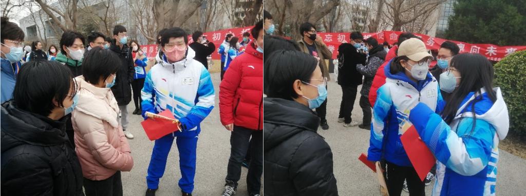 城市建设学部党委副书记李佳斌、员工工作办公室主任夏佳宁和本科生工作组组长王甜到场向冬奥志愿者们致以亲切问候。学部为“小雪花”们准备了补给物资。在校的员工干部们组织起了服务队伍,帮助志愿者们搬运行李。