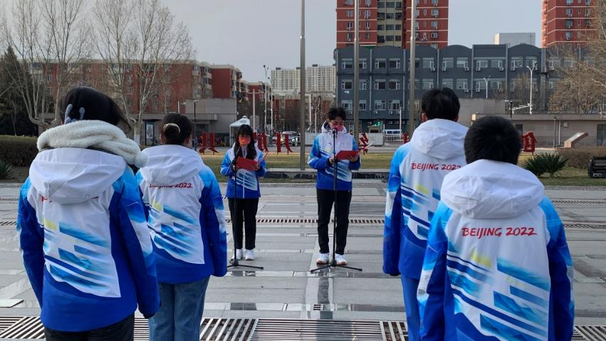 活动伊始,马清晨同学代表学部志愿者们向在场师生分享了冬奥服务经历,表示有幸成为冬奥、冬残奥会的志愿者,成为这一伟大历史时刻的见证者、亲历者、参与者,感到无上荣耀。她向所有志愿者发出一起携手,继续为实现第二个百年目标贡献青春力量的号召。