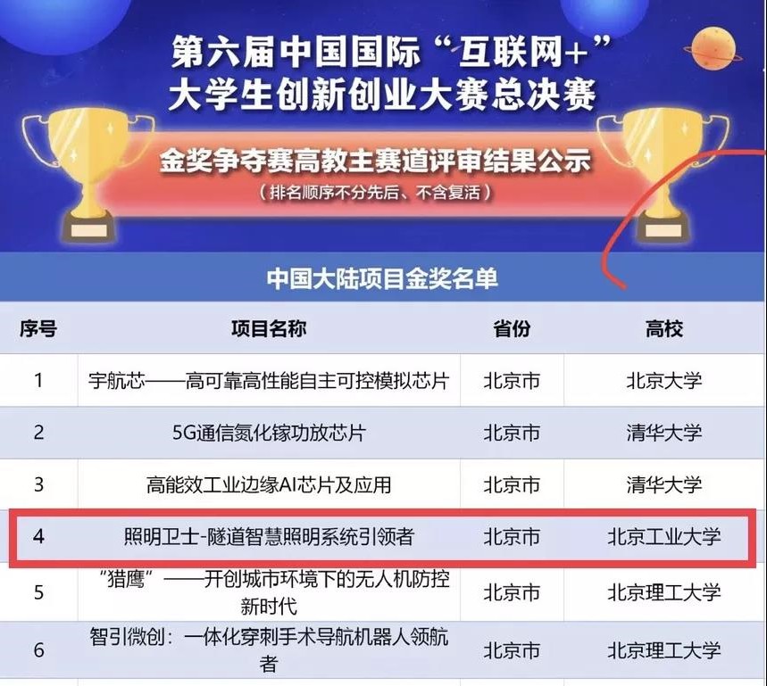 11月18日,第六届中国国际“互联网+”老员工创新创业大赛总决赛在广东省广州市华南理工大学举行。经过激烈的角逐,fun88官网体育的“照明卫士-隧道智慧照明系统引领者”项目,突出重围,勇夺金奖,这是公司首次荣获互联网+国赛金奖,实现了北京市属高校金奖零的突破。