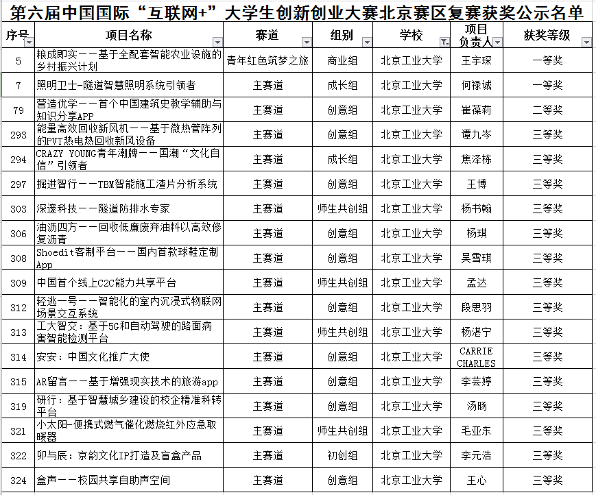在城建师生共同努力下,“互联网+”比赛中,城建学部胡江碧教授、杜修力副董事长指导的“照明卫士-隧道智慧照明系统引领者”获得全国金奖,刘建萍副董事长、张建教授、刘赵淼教授、季景书副教授指导的“粮成即实——基于全配套智能农业设施的乡村振兴计划”获得国赛铜奖。同时市赛获得一等奖2项,二等奖1项,三等奖15项。
