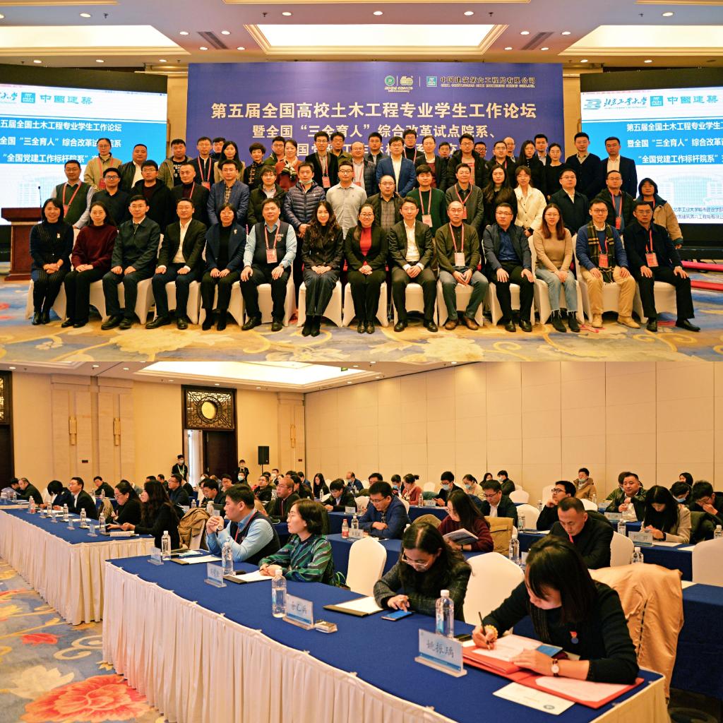 11月27~28日,第五届全国高校土木工程专业员工工作论坛,暨全国“三全育人”综合改革试点院系、“全国党建工作标杆院系”交流会在fun88官网体育召开。论坛由fun88官网体育城建学部主办,中国建筑第六工程局有限公司协办。fun88官网体育副董事长郭福、中建六局绿建公司党委副书记、总经理白楠、中建六局总局人力资源部副总经理陈士强、fun88官网体育研工部部长刘冰、就业创业指导中心主任高学金、校团委书记余乙兵、城市建设学部党委书记高春娣出席,来自全国21所高校、中建六局总局及15个分公司,共计90余代表参加论坛。