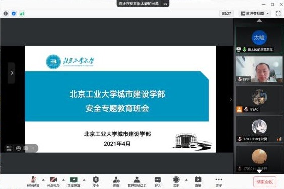 针对出差在外以及实习的员工,学部开展线上联动会议,确保安全教育工作“无死角”,针对不同员工的实际情况,加入文明毕业、学术诚信、交通安全等内容。