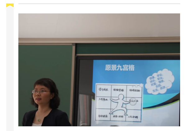 廖老师还分享了“愿景计划”的目标制定方法,利用九宫格对实现目标的方法、途径、困难等内容进行分析,全面剖析自己的目标,更有效率地完成自己的目标。