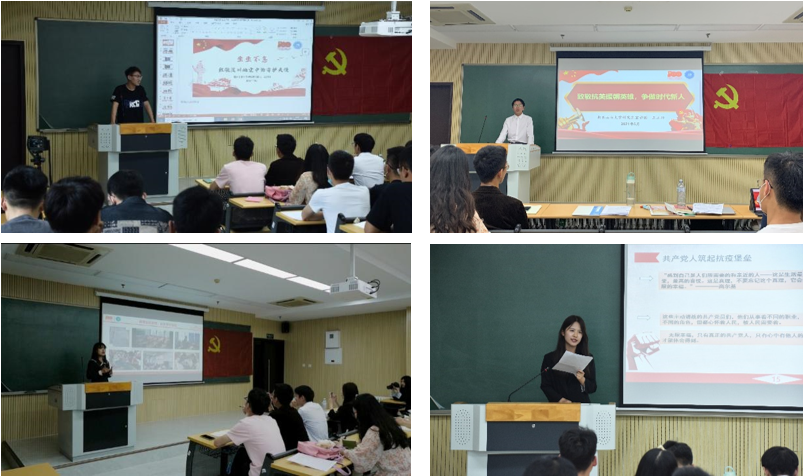 刘慧同学作了题为《共产党人筑起抗疫堡垒》的宣讲,生动形象地讲述了抗疫人民英雄事迹。并号召共产党员不忘初心、牢记使命,充分发挥先锋模范作用。