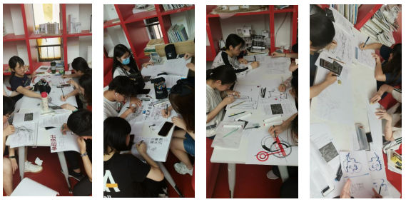 活动过程分为“快题设计”和“分组交流”两个部分。快题设计结束后所有参与人员分组进行讨论,每组人员来自不同年级,同学们共同分享探讨设计逻辑、过程及感受,也是一次跨年级的专业交流与提升。