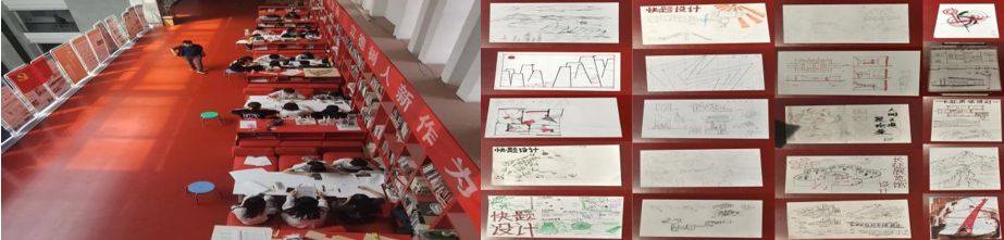 活动不同于平时的建筑快题设计,采用全新党日活动形式,以党史中的重要史事作为材料支撑,以快速设计为题型,形式开放,包括但不限于平面构成、立体构成、空间组织、体验装置、平面设计等,活动涵盖从低到高所有年级,具有较强的专业契合性,以创新形式为载体,推进党史教育学习,鼓励同学们边思考、边创造,以设计为索引激发同学们的内在能动性。