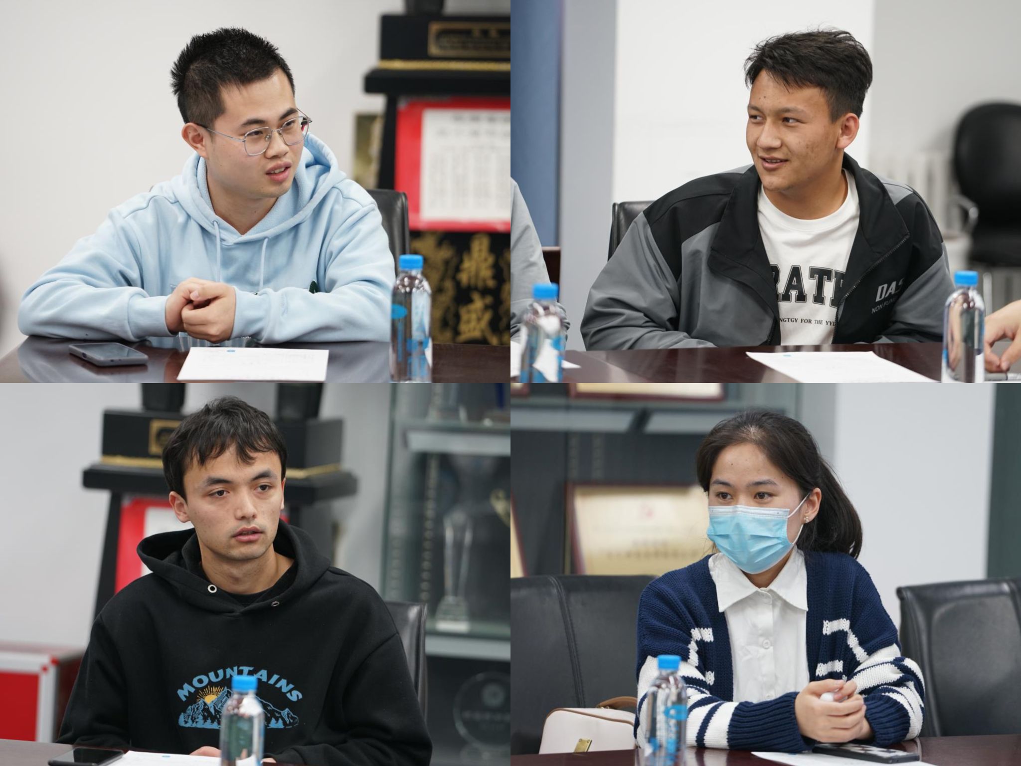 随后,参会少数民族员工代表依次发言。有的同学对保研的公司选择犹豫不决,有的同学对未来考研的方向不知道如何决策,有的毕业班同学手里已有offer、还在等地方公务员的面试通知,还有的同学打算考研、但英语学习存在困难……同学们表示无论是学业上还是生活上都受到了学部及老师们的关怀和帮助,也期待后面学部针对同学们的学习、个人发展等提供更多的指导和支持。