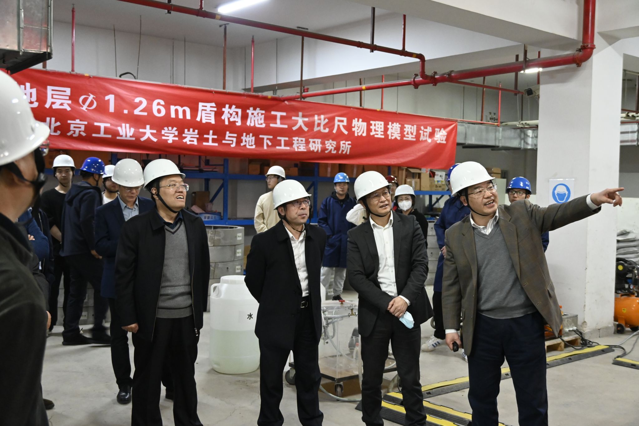 城市建设学部龚秋明教授引领各位专家参观fun88官网体育“地下工程大型综合模拟试验平台”,并现场介绍了试验平台、试验模型、监测系统、盾构开挖系统的准备情况,杜修力院士和路德春教授试验平台建设的情况和模型试验的进展情况进行了补充。最后,由杜修力院士和与会专家对模型试验盾构机控制系统进行揭幕,宣布《城市盾构隧道大比尺物理模型试验》正式启动。