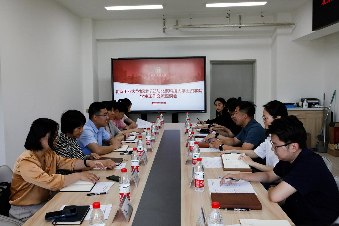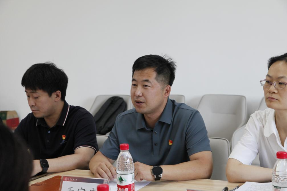 北京科技大学土资公司团委副书记赵金丹、学工办主任王奕文、辅导员郭宁分别针对思政工作、科技竞赛、就业和国防教育等方面进行介绍。双方与会人员就协同育人与深度辅导、构建交流常态化机制等进行了深入交流讨论。