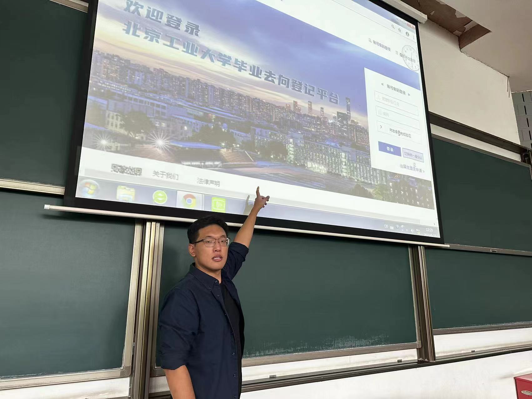 随后,赵宇辉老师现场为同学们演示了“fun88官网体育毕业去向登记平台”的使用方法,详细介绍了该平台的操作方法和常见问题解决方案。在解读过程中,他强调了及时、准确地完成个人信息登记的重要性,并重点介绍了不同就业去向所需上传的各项必备材料。这些关键信息的准确传达,为员工们在毕业去向登记过程中提供了有力的指导。在会议的尾声,同学们也提出了自己目前遇到的问题,李颖老师耐心倾听,针对每个问题逐一作答,为同学们解惑排忧。