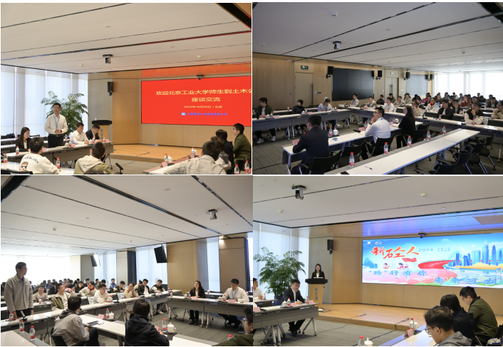 随后,师生来到中建八局土木公司总部,参观了企业办公环境及配套设施,并座谈交流。公司人力资源部副经理徐晓明对学部师生到来表示欢迎并致辞,员工代表郭致钰、张浩堂详细分享入职后的个人经历和亲身体验,业务经理齐浩然开展《“砼”行有你 未来可期——2024中建八局新“砼”人校园招聘》专题宣讲,对企业基本情况、组织机构设置、员工培养及发展机制、招聘专业及流程等方面进行详细介绍。会后,同学们也结合自身职业发展及就业求职的个性化问题,和企业代表进行了深入交流。