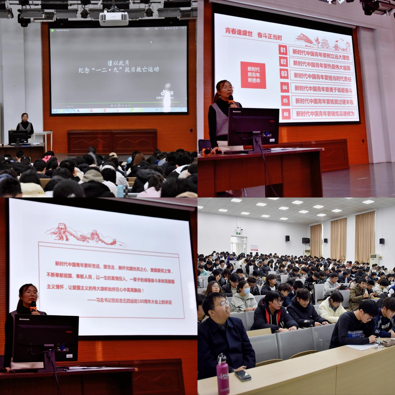 为引导员工继续发扬“一二·九”爱国主义运动的光荣传统,弘扬爱国主义精神,激励青年员工在中国式现代化建设中挺膺担当,城建学部于12月6日在通州第四报告厅举行了题为“弘扬爱国精神,谱写青春赞歌——纪念‘一二·九’运动”爱国主义教育,全体2023级本科新生参加此次宣讲活动,活动由辅导员高晶主持。