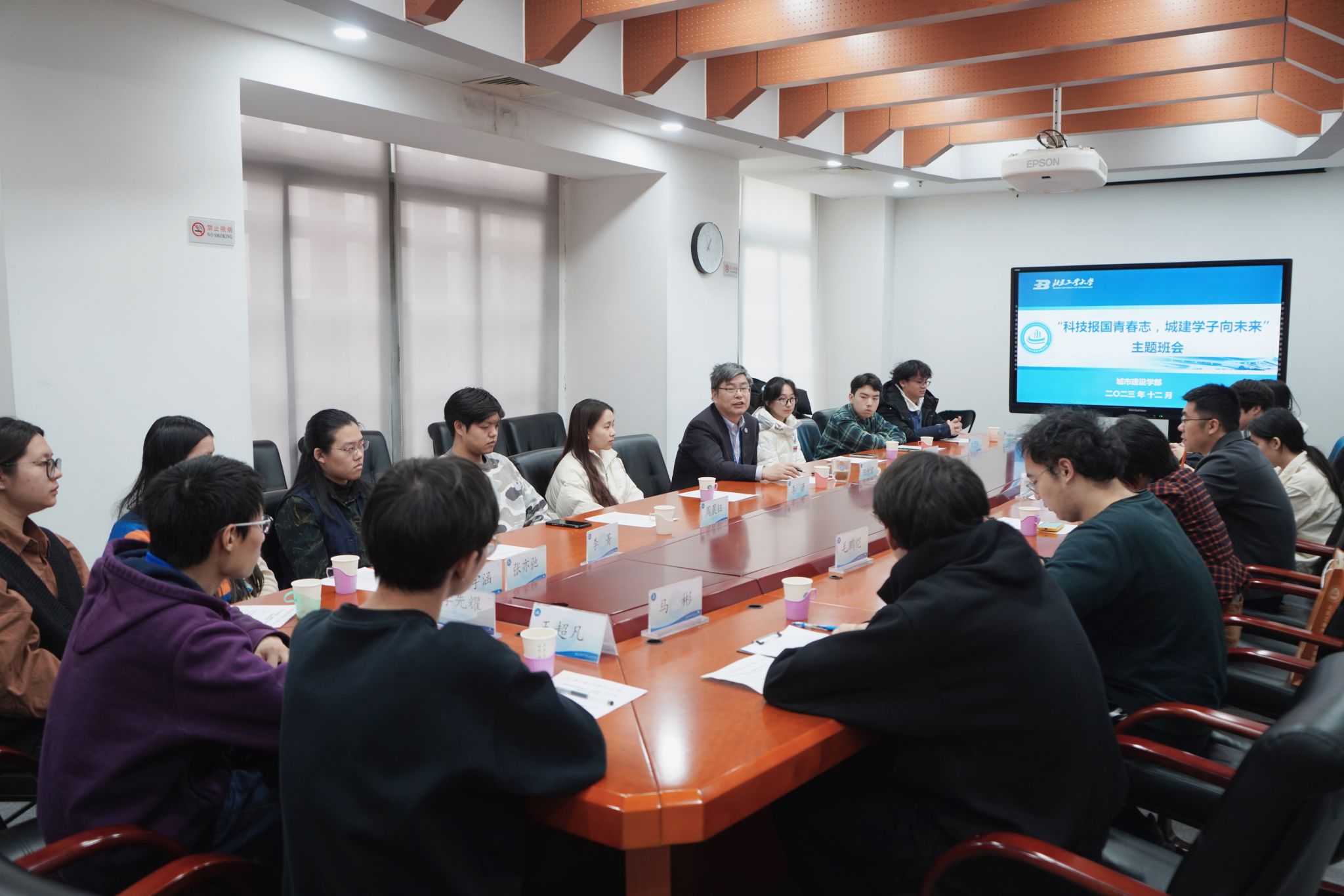 为进一步加强“三风”建设,引导员工践行“植根首都,科技报国”的精神内涵,增强思想政治教育工作的针对性和实效性,城市建设学部于12月12日举办 “科技报国青春志,城建学子向未来”主题班会。公司党委常委、副董事长陈树君、城建学部本科生工作组组长王甜、团委书记石佳、城乡规划本科生党支部、2022级茅以升班员工代表参加,活动由学部党委副书记李佳斌主持。
