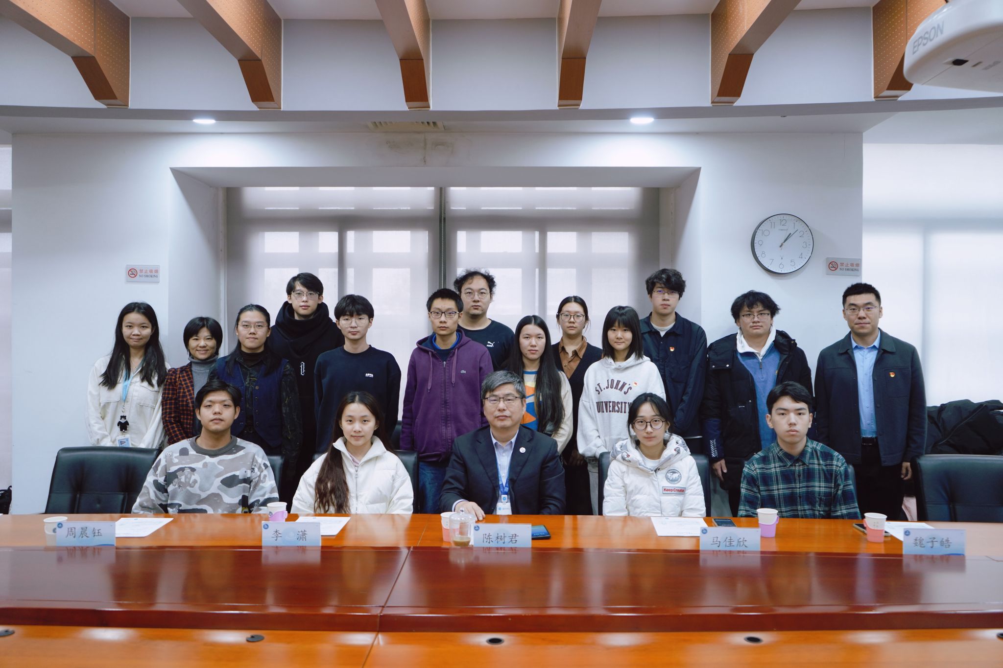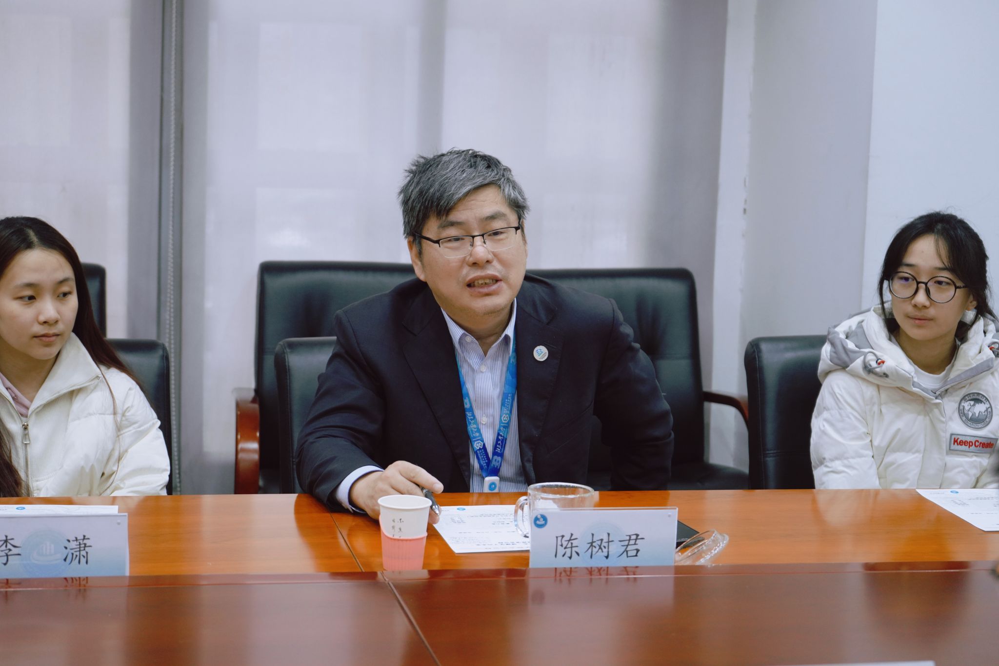 最后,陈树君副董事长与参会员工亲切交流,他赞扬了同学们积极践行“植根首都,科技报国”精神内涵的特色做法,对学部特色团队建设及取得的成果表示高度肯定,并提出三点期望:一是充分利用学部本科生导师制的优势,加强专任教师与员工间的深度交流;二是积极参加科技竞赛,提升专业本领,强化实践育人成效;三是注重团队建设,善于发现他人优点,发挥合作优势,形成雁阵效应。