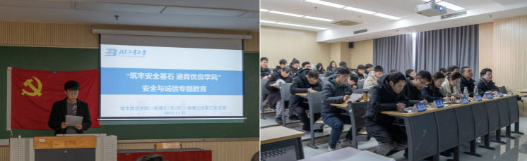 为深入贯彻公司第十二次党代会精神,传达公司安全警示大会精神,以坚实的安全稳定基础保障优良学风建设,12月20日至21日,城市建设学部分批次召开“筑牢安全基石 涵育优良学风”安全与诚信专题教育,2023级博士班导师、辅导员以及全体员工参加,党支部书记刘佳莉、杨斌、宗淼分别主持。