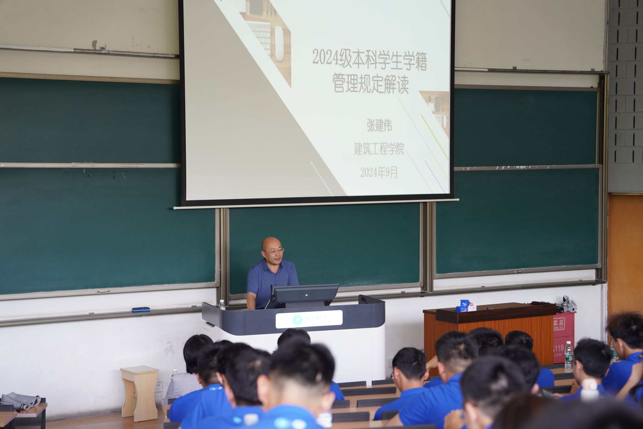 公司副经理张建伟为新生讲解本科生学籍管理规定。他详细为新生解读了本科生学籍管理制度与培养蓝图,帮助同学们从宏观上把握大学四年的学习路径,从细节上落实好学业规划,明确毕业与学位授予的学术标准,为同学们的个性化成长定了坚实基础。
