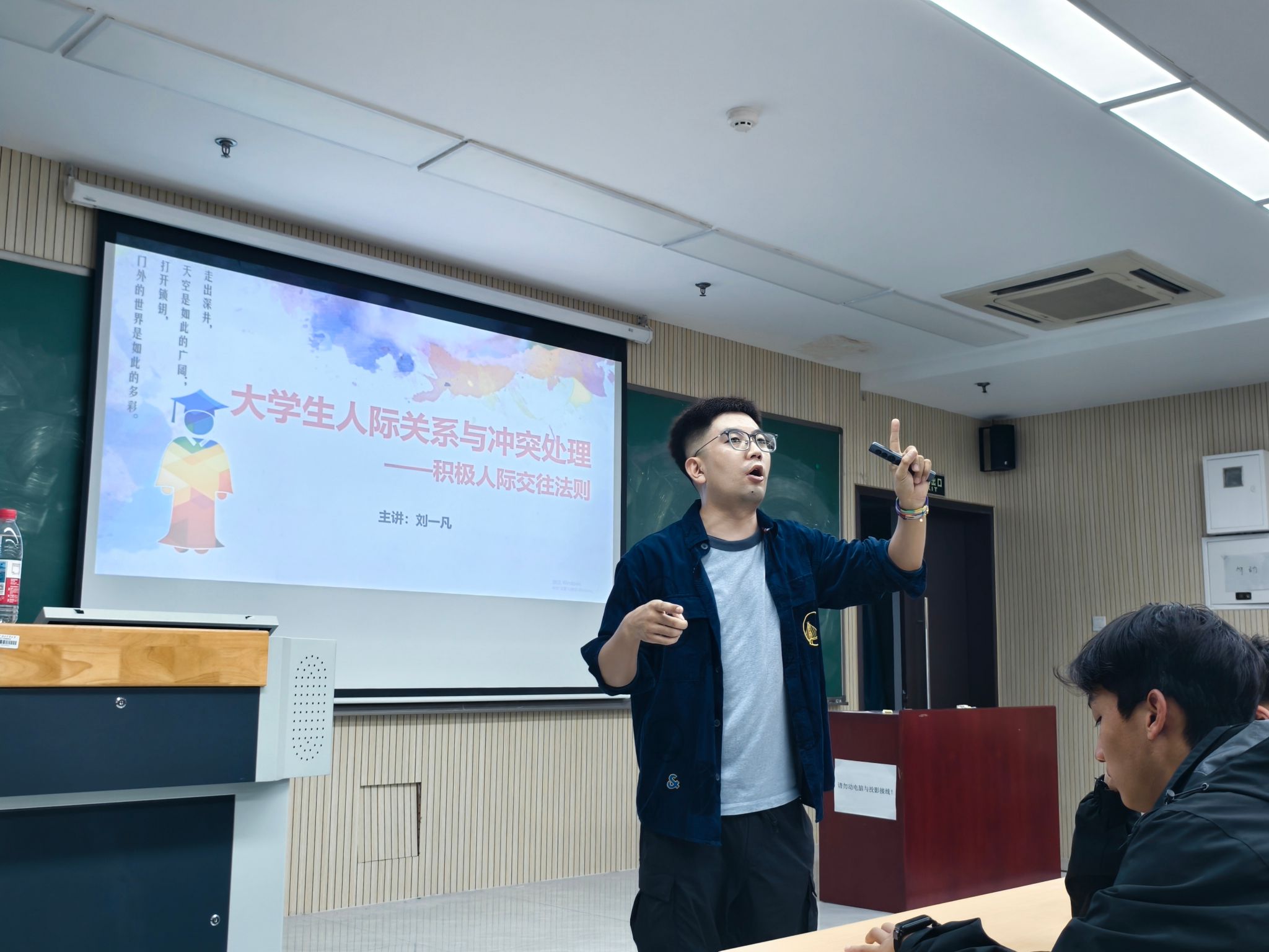 在“情绪探索”环节中,刘老师带领同学们识别人类四种基本情绪——喜悦、愤怒、悲伤与恐惧,帮助大家建立对情绪的觉察能力。通过现场举手调查“你最近感到幸福吗?”,员工们直观表达了自身的情绪状态,并在分享中袒露学业压力、社交焦虑、环境适应等现实困扰。针对这些共性问题,刘老师系统讲解了情绪管理三步法,帮助同学们识别情绪类别,建立个性化的调节方式。他强调:“良好的人际关系并非没有矛盾,而是能够在冲突中保持尊重、理解与成长。处理人际冲突的过程,实则是提升自我认知、增强情商与社会适应力的重要契机。”
