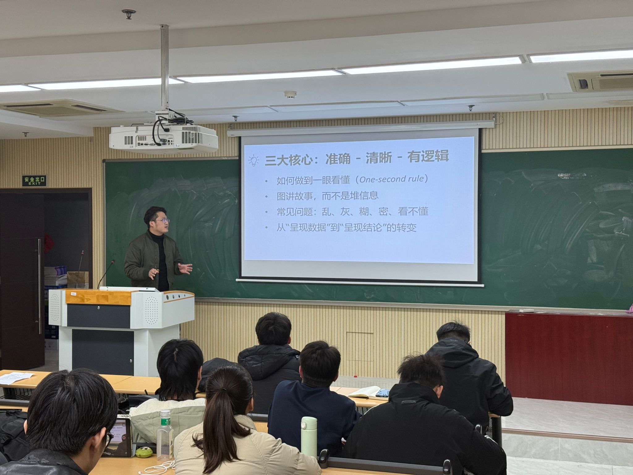邓佳慧同学则带来了《硕士路上的四大关卡》主题报告。对于学术沟通,她用“员工是司机,导师是导航”的生动比喻,强调同学们应主动把握研究方向,借助导师的经验指引路径,通过定期、高效的沟通实现科研路上的“同频共振”。在论文写作方面,她分享了“先搭骨架,再填血肉”的实用方法。她还和同学们一起探讨了通过运动、爱好与社交构建“能量补给站”的心态调节方法,为同学们提供了从科研方法到心理建设的全方位指导。