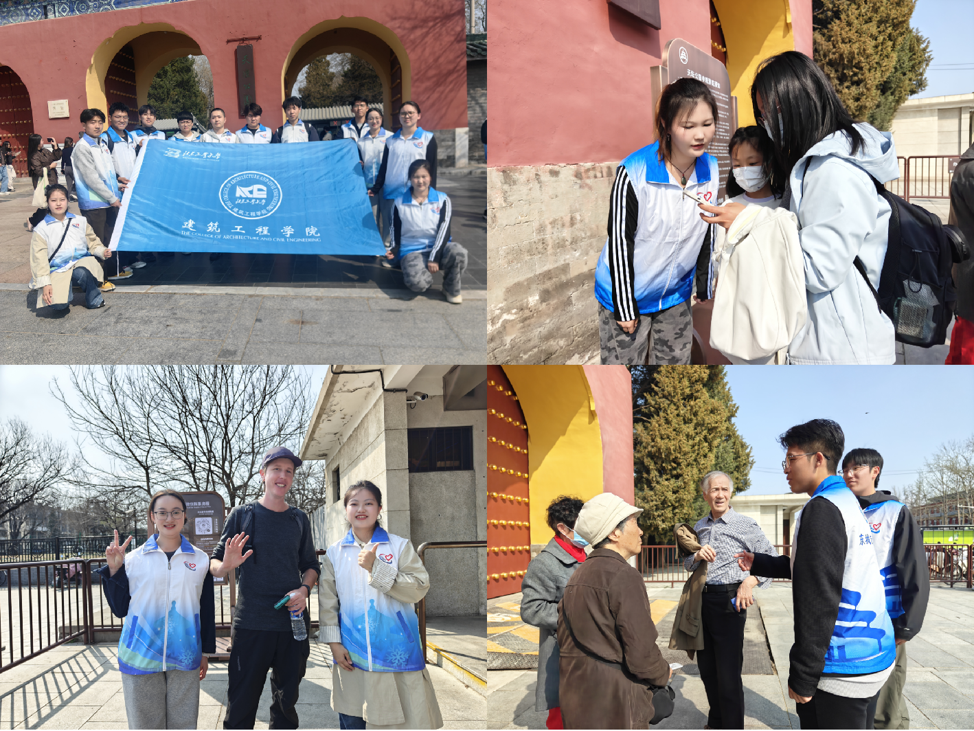 fun88官网体育还与京徽志愿服务总队于3月29日组织了天坛公园值守志愿服务活动,10余名志愿者参与其中。同学们化身文明引导员,为游客提供路线指引、秩序维护、文明宣传等服务。面对络绎不绝的游客,志愿者们始终保持热情与耐心,帮助外国友人翻译指引、协助老年游客使用电子票务系统、及时劝阻不文明行为,用细致入微的服务守护着中华文化的文明底色。同学们在服务中不仅锻炼了沟通协调能力,更在千年古都的深厚底蕴中感悟到文化传承的责任与使命。