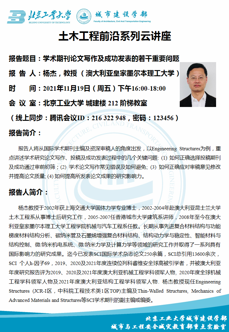 城市建设学部土木工程前沿系列云讲座-学术期刊论文写作及成功发表的若干重要问题