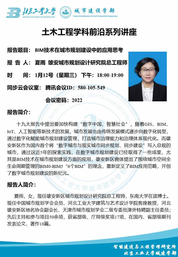 城市建设学部土木工程学科前沿系列讲座-BIM技术在城市规划建设中的应用思考
