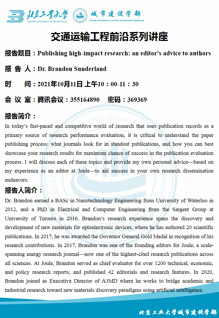 城市建设学部交通运输工程前沿系列讲座-Publishing high-impact research:an editor's advice to authors