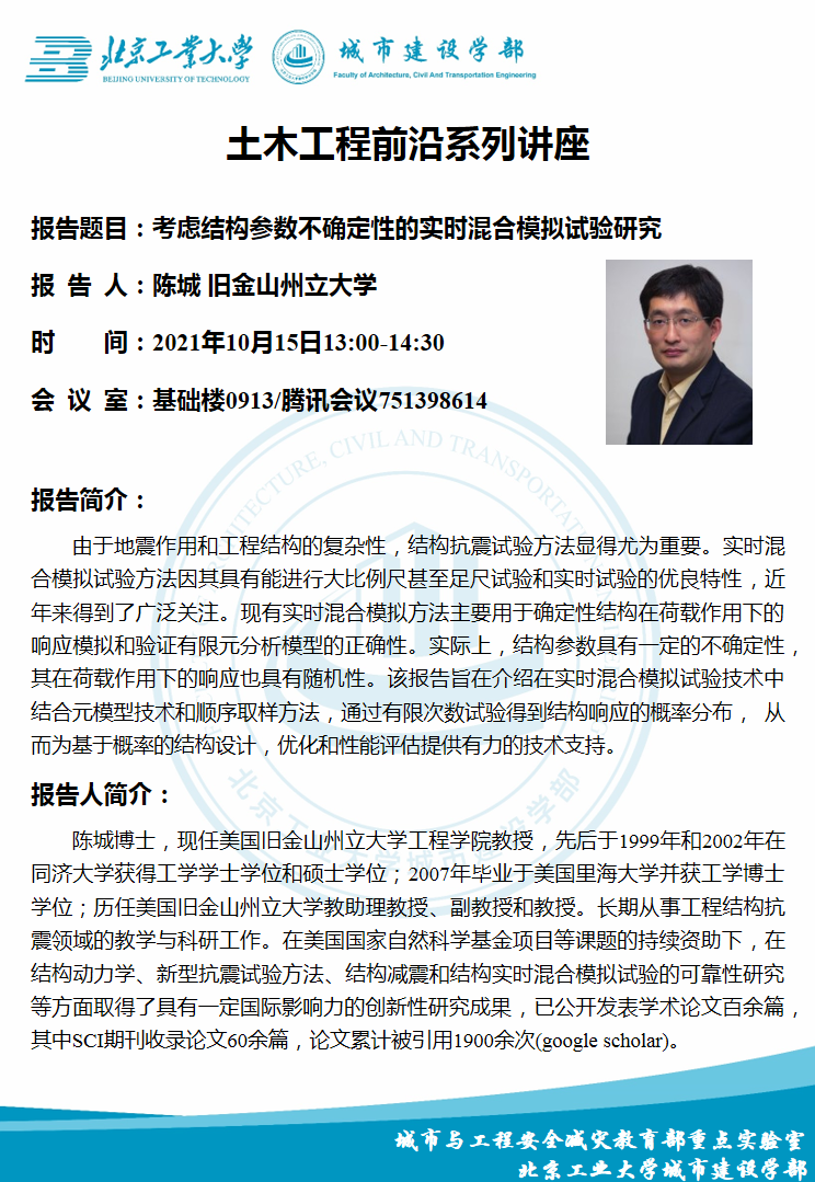 上一条:城市建设学部土木工程前沿系列讲座—轨道移动激光扫描系统与应用