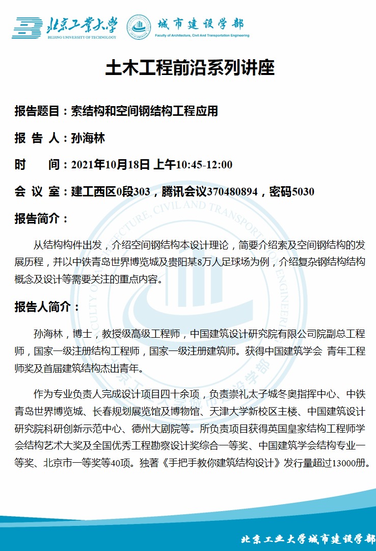 城市建设学部土木工程前沿系列讲座-索结构和空间钢结构工程应用
