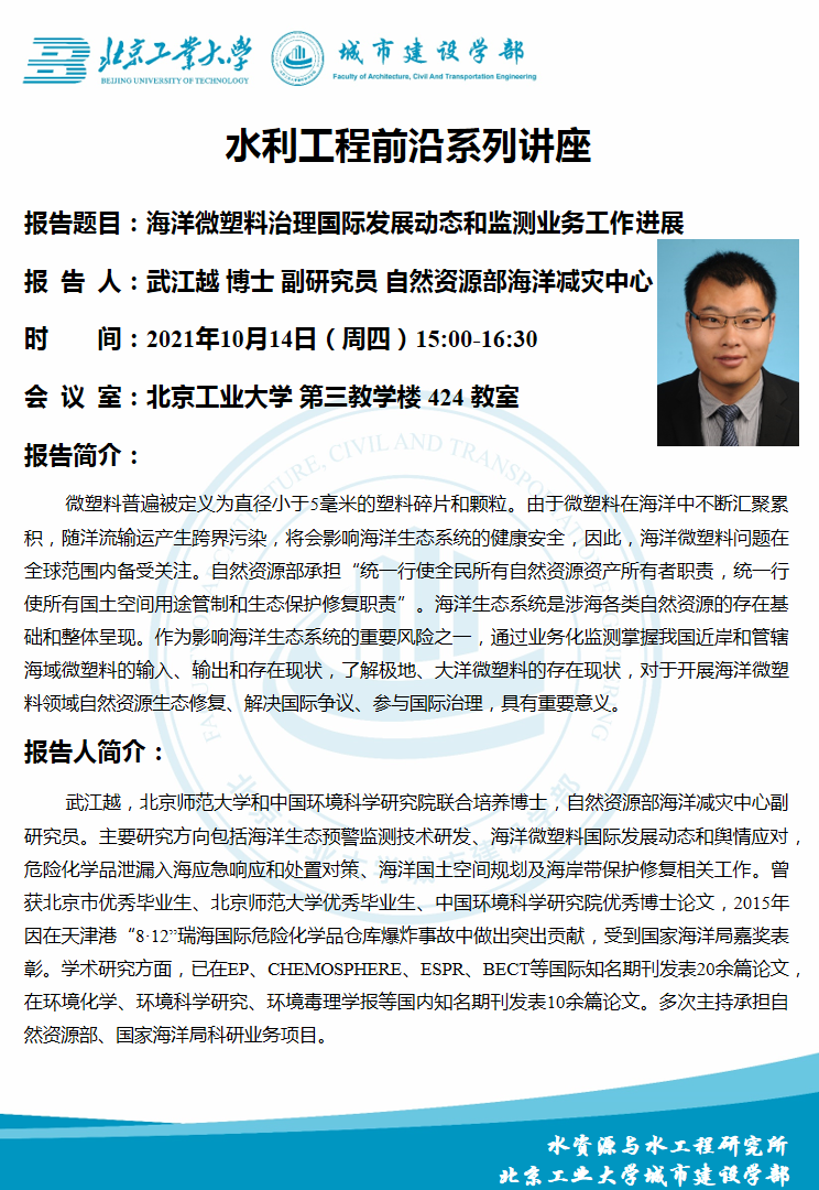 城市建设学部水利工程前沿系列讲座-海洋微塑料治理国际发展动态和监测业务工作进展