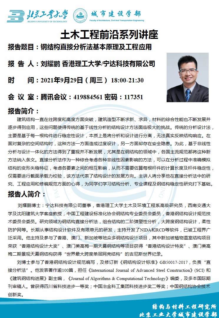城市建设学部土木工程前沿系列讲座-钢结构直接分析法基本原理及工程应用