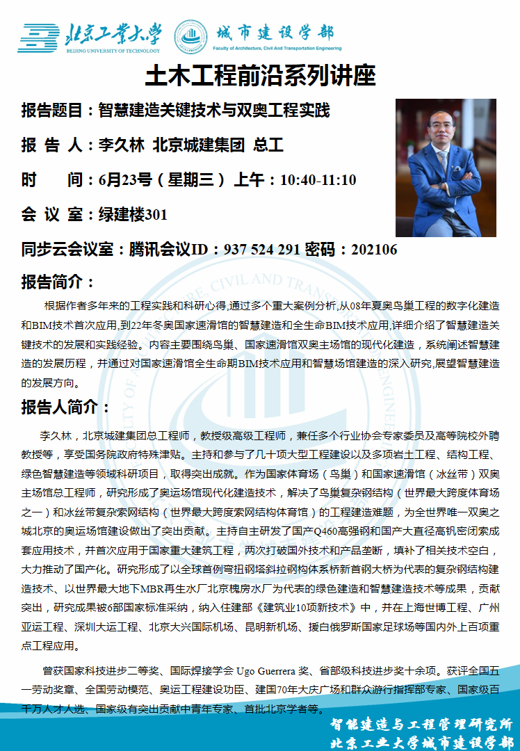 城市建设学部土木工程前沿系列讲座-智慧建造关键技术与双奥工程实践