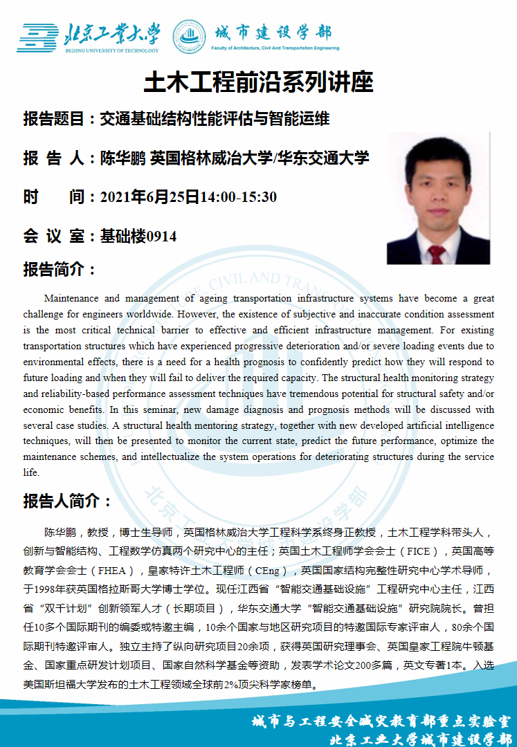 城市建设学部土木工程前沿系列讲座-交通基础结构性能评估与智能运维