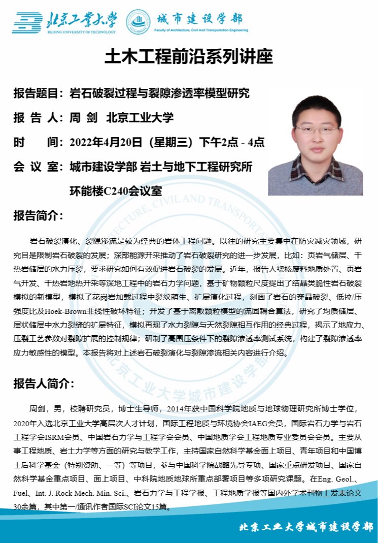 城市建设学部土木工程前沿系列讲座—岩石破裂过程与裂隙渗透率模型研究