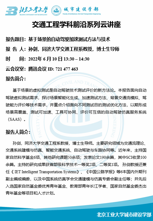 城市建设学部交通工程学科前沿系列云讲座-基于场景的自动驾驶加速测试方法与技术
