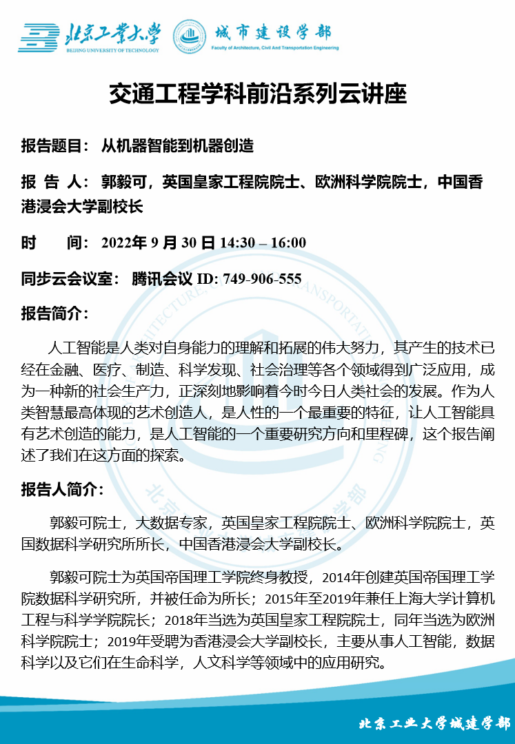城市建设学部交通工程学科前沿系列云讲座-从机器智能到机器创造
