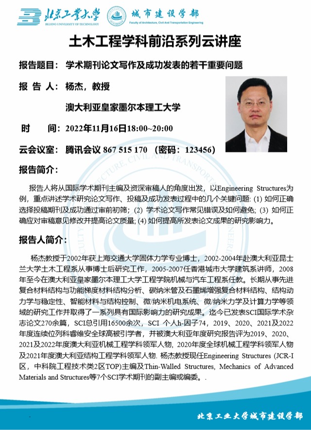 城市建设学部土木工程学科前沿系列云讲座-学术期刊论文写作及成功发表的若干重要问题