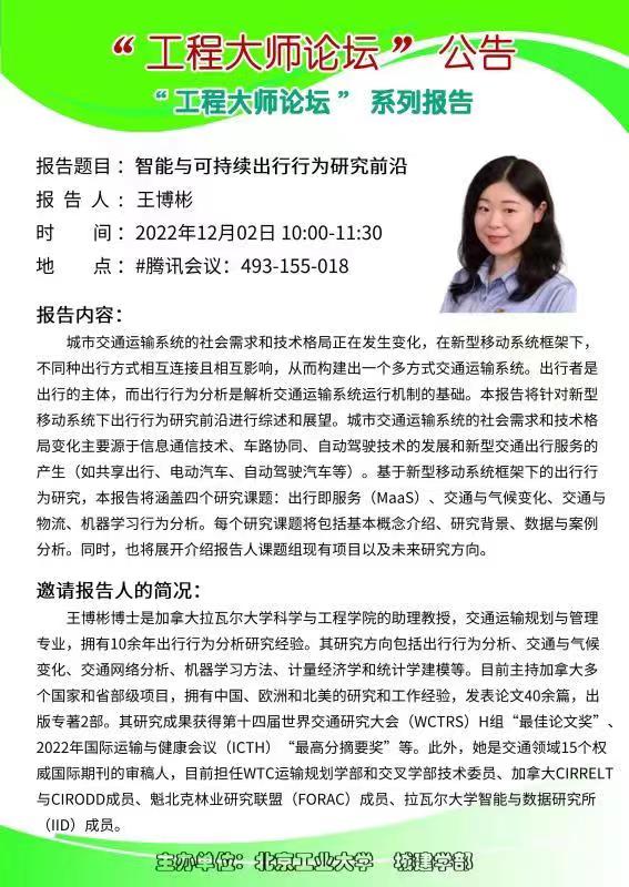 城市建设学部工程大师论坛-智能与可持续出行行为研究前沿