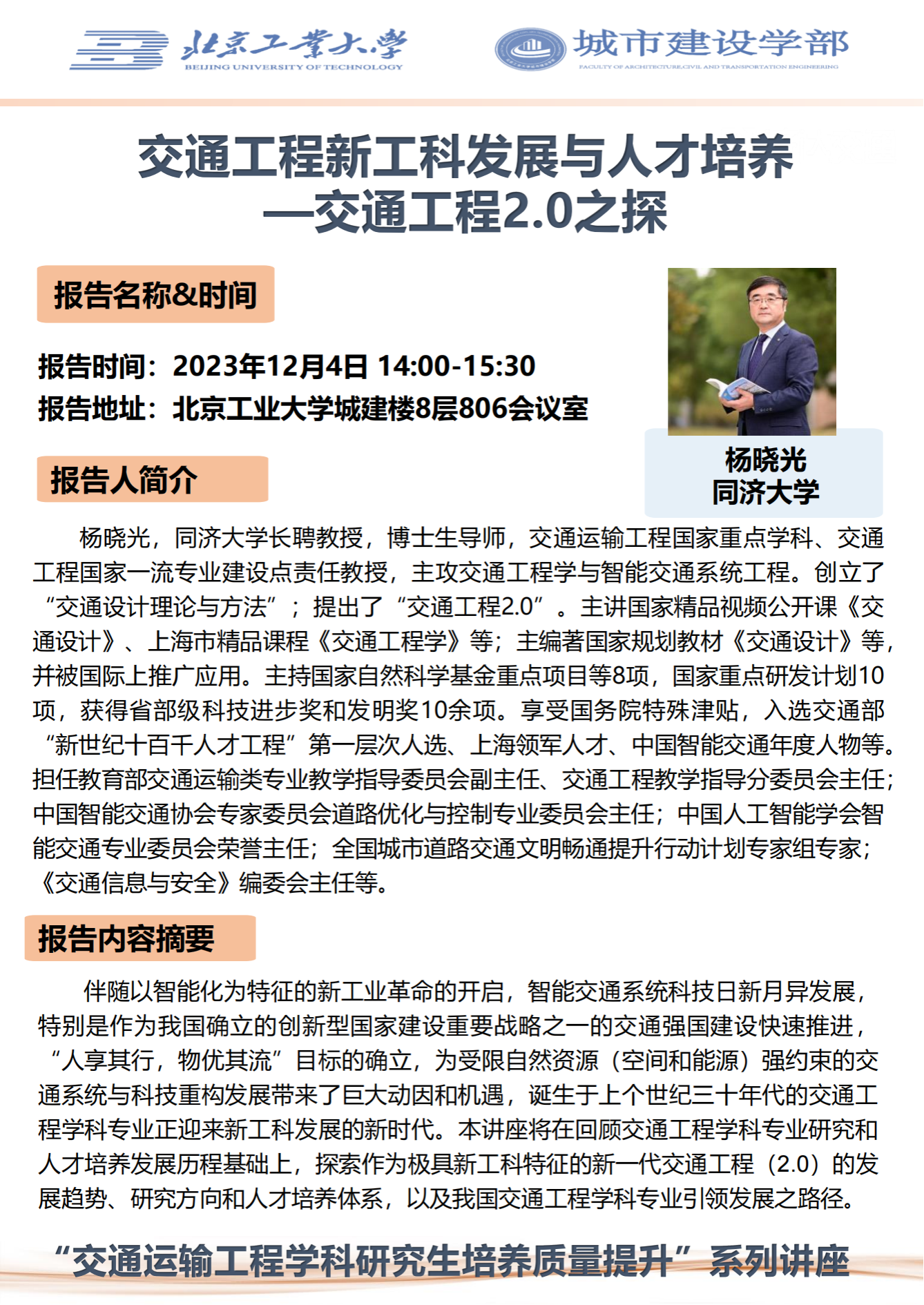 上一条:【城建 · 学术报告】城市建设学部“工程大师讲坛”系列报告——交通工程领域前景展望——就业与学习经验分享