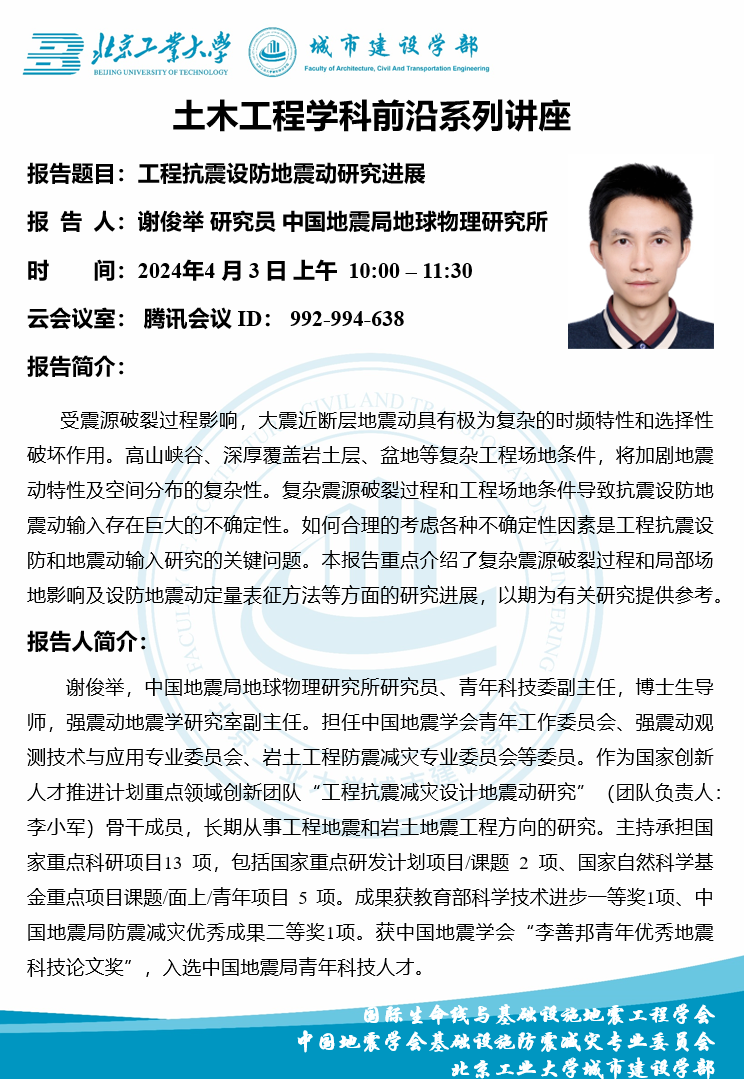 【城建 · 学术报告】城市建设学部土木工程学科前沿系列讲座——工程抗震设防地震动研究进展