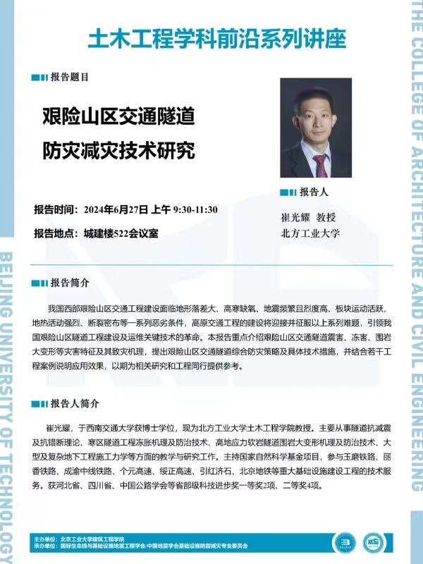 【建工 | 学术报告】土木工程学科前沿系列讲座——艰险山区交通隧道防灾减灾技术研究