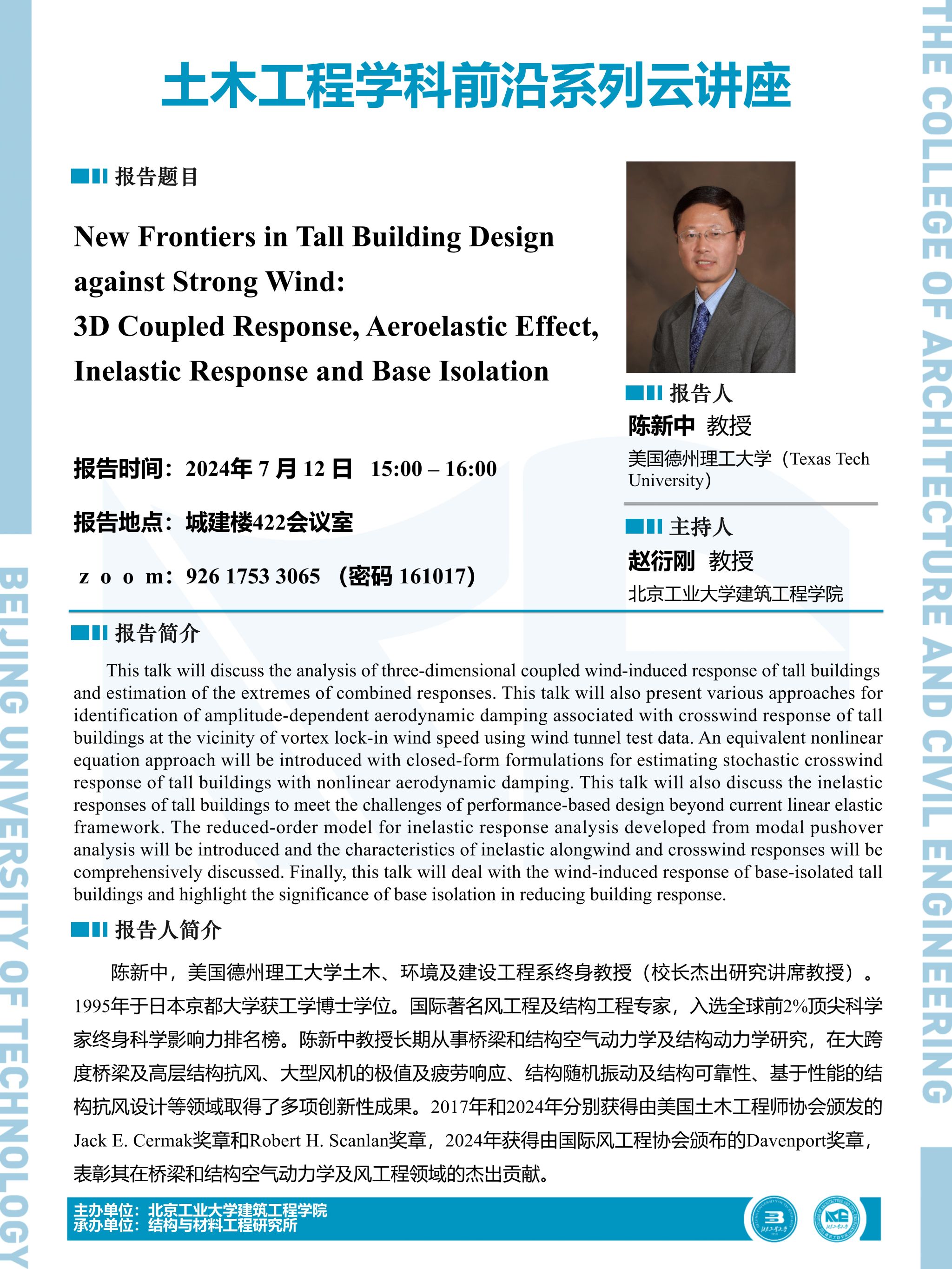 下一条:【建工 | 学术报告】土木工程学科前沿系列云讲座——海上风机支撑结构动力分析:参数识别、高效计算和振动控制