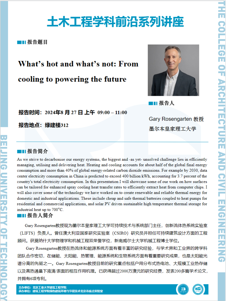 【建工 | 学术报告】土木工程学科前沿系列讲座——What's hot and what's not: From cooling to powering the future