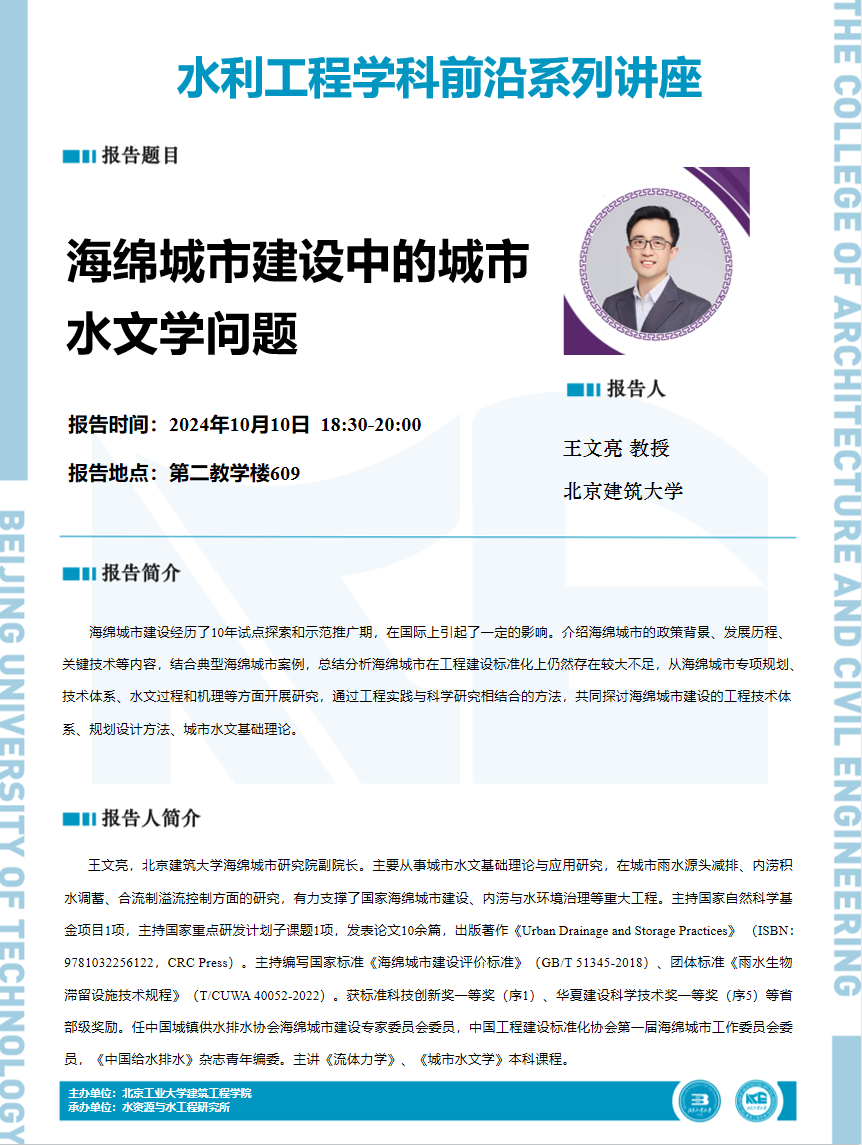 【建工 | 学术报告】水利工程学科前沿系列讲座——海绵城市建设中的城市水文学问题