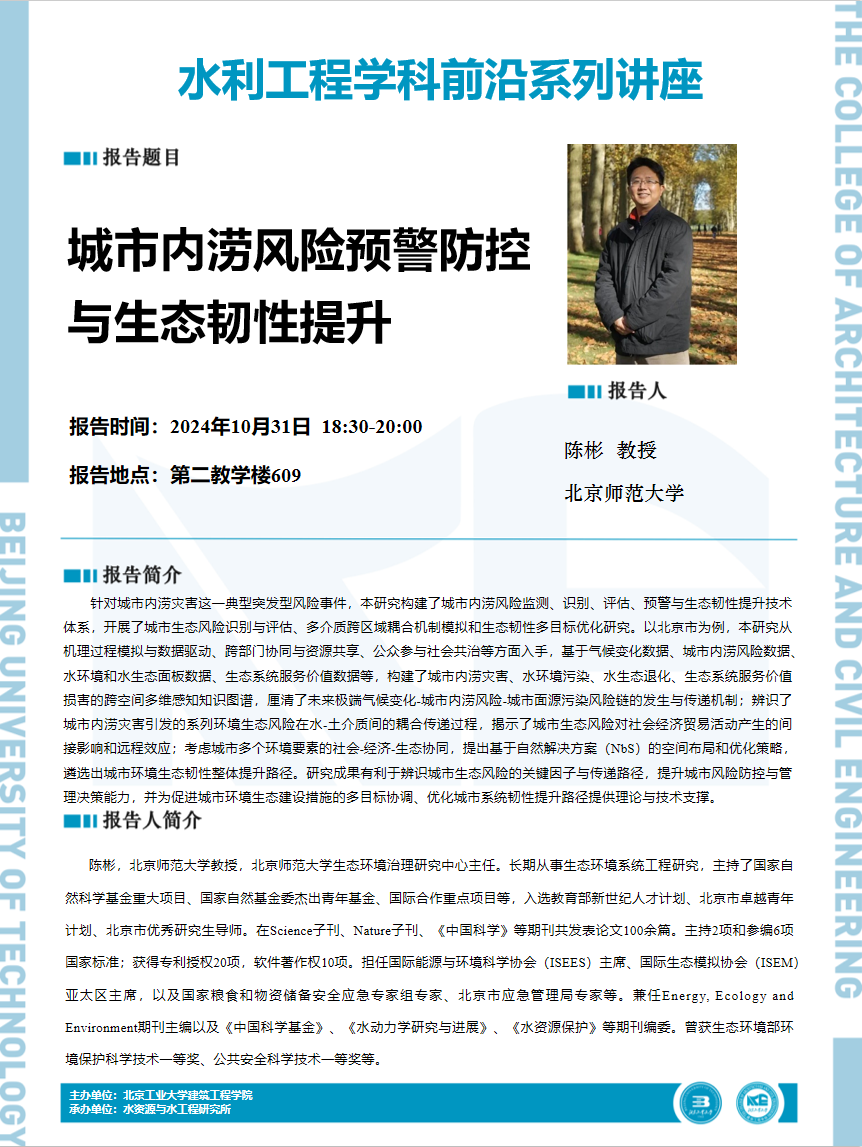 【建工 | 学术报告】水利工程学科前沿系列讲座——城市内涝风险预警防控与生态韧性提升