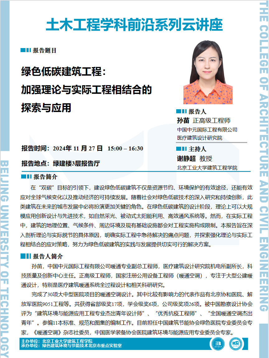 【建工 | 学术报告】土木工程学科前沿系列云讲座——绿色低碳建筑工程:加强理论与实际工程相结合的探索与应用