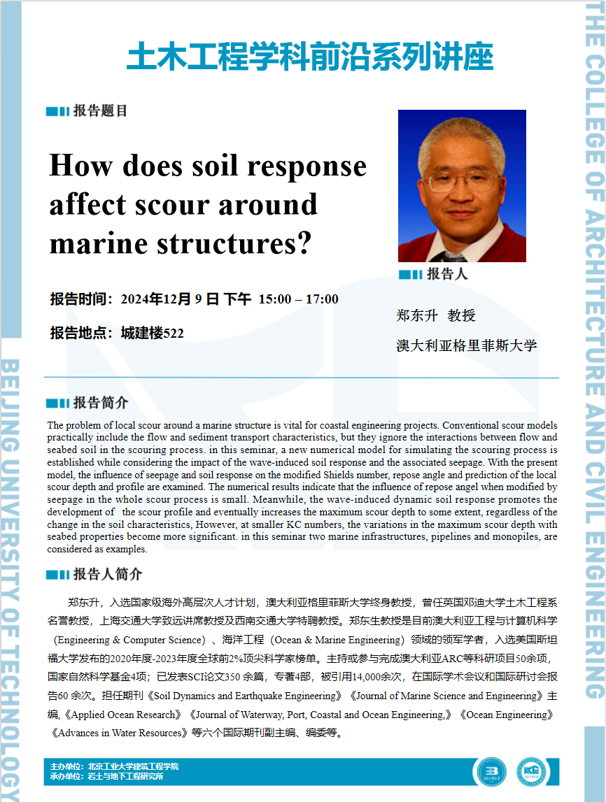 【建工 | 学术报告】土木工程学科前沿系列讲座——How does soil response affect scour around marine structures?